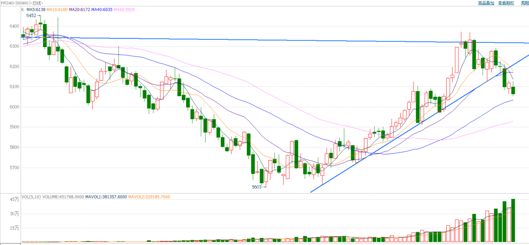 截至前一个交易日收盘,PVC冲高回落,收小阴线。日k线遇到前期密集成交区压力拐头向下,前期上涨行情或已结束。