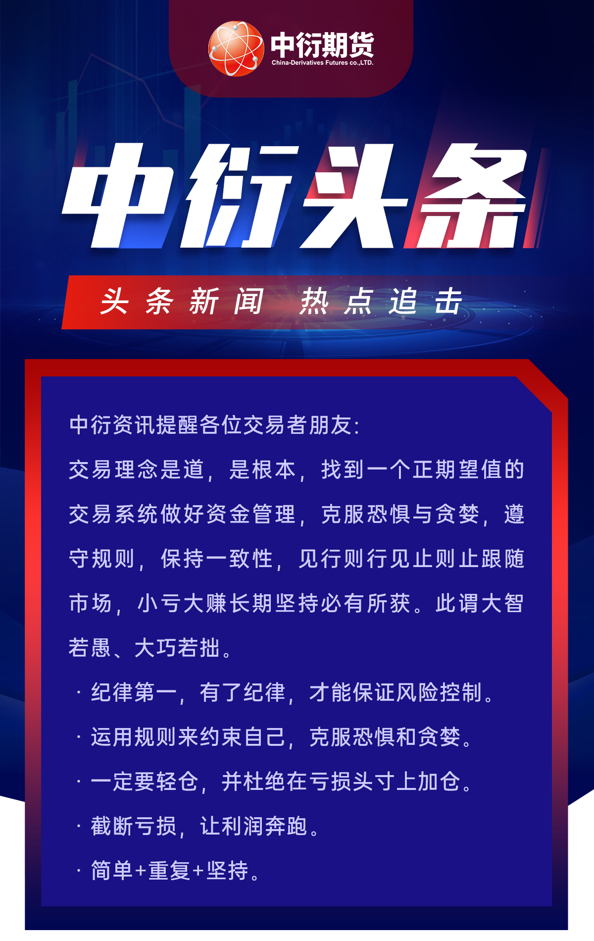 中衍期货有限公司具有中国证监会核准的期货投资咨询业务资格(批文号:证监许可[2012]1525号)。本公司文件/图片/视频的观点和信息仅供中衍期货风险承受能力合适的签约客户参考。本文件/图片/视频难以设置访问权限,若给您造成不便,敬请谅解。本公司不会因为关注、收到或阅读本文件/图片/视频内容而视其为客户;本文件/图片/视频不构成具体业务或产品的推介,亦不应被视为相应期货和衍生品的交易建议,不应凭借本文件/图片/视频进行具体操作。请您根据自身的风险承受能力自行做出交易决定并自主承担交易风险。