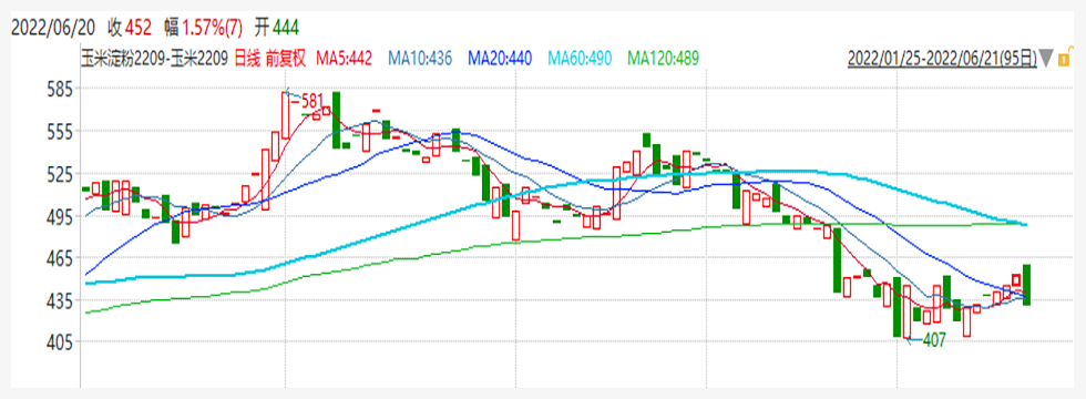 全国疫情有所好转,下游需求处于恢复增长阶段,玉米淀粉需求出现阶段性回升。木薯淀粉价格高企,高于玉米淀粉约700元/吨左右,玉米淀粉在造纸行业中用量明显增加。目前玉米淀粉现货价格趋于平稳,现货报价区间维持在3250-3550元/吨,前期累库状况有所减缓,短期现货行情呈现高位震荡走势,在成本压力下企业挺价心理较强。玉米方面,南方饲料企业库存充足,养殖需求疲软,玉米成交量萎缩。替代品方面,定向稻谷拍卖,部分替代饲用玉米需求,进口玉米库存充足,利空玉米市场。玉米现货价格维持弱势整理。 策略建议:多玉米淀粉空玉米09,该策略为6月20日新推出跨品种套利策略,可适当加以关注,若差价下破424取消关注。