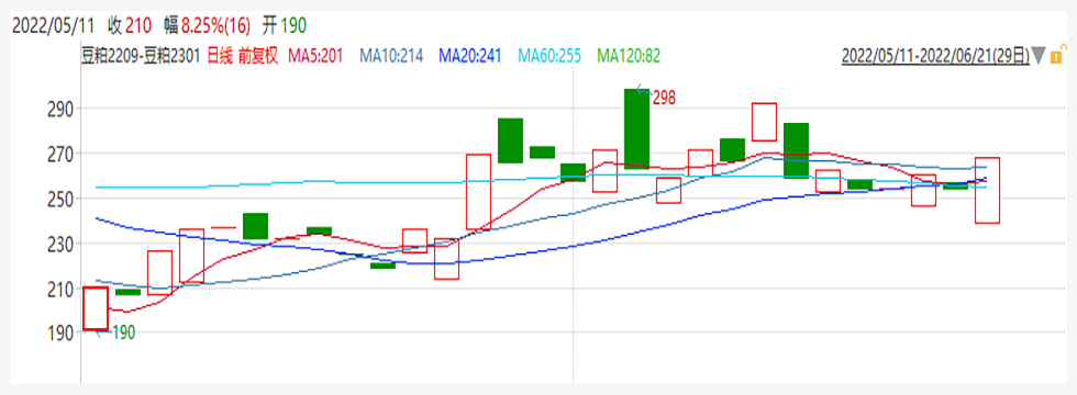 截至前一个交易日收盘,棕榈油低开低走,收中阴线。日k线形成双头形态,向下突破颈线,开启下行趋势。