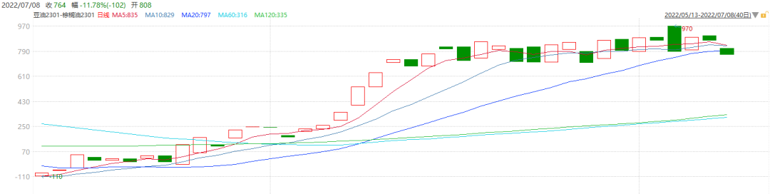 豆油方面, 6、7月北半球大豆处于关键生长期,往往受天气影响比较大,一般年份在这一时期往往会出现天气方面的炒作。棕榈油方面,据报道自从5月23日起印尼取消出口禁令以来,印尼政府一共发放了189万吨的棕榈油出口许可证,令国际棕榈油领跌油脂品种,加之欧盟未来可能减少棕榈油工业进口需求,也打压棕榈油价格。策略建议:多豆油空棕榈油01 ,该策略为新推出的跨品种套利策略,可适当加以关注。若二者差价跌破670取消关注。