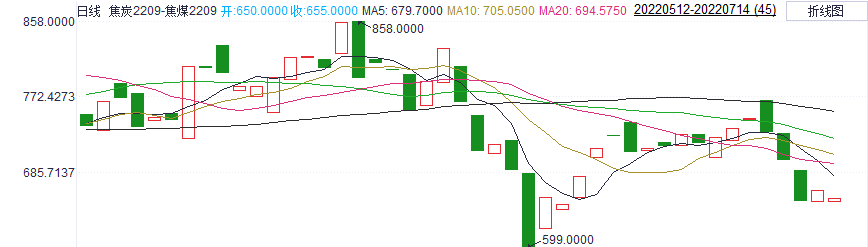 从基本面供应端来看,6月13日-6月19日澳巴铁矿石发运有所回升,45港到港总量2387.5万吨,环比增加496.8万吨。全国钢铁库存维持高位,虽然继续呈下降趋势,但降幅有所收窄。部分钢企因亏损严重停产,唐山周边高炉检修数量有所增加,加之压缩粗钢产量的预期等因素,铁矿石需求明显回落。天气方面,华南暴雨影响,以及全国多地夏季高温天气,使得钢材需求有所下滑,预计短期期价呈震荡偏弱走势。从盘面观察,远月01合约价格下行过程中相较较近月09合约更为抗跌,较近月合约因受进口量增加和需求转弱的影响,下行压力明显加大。