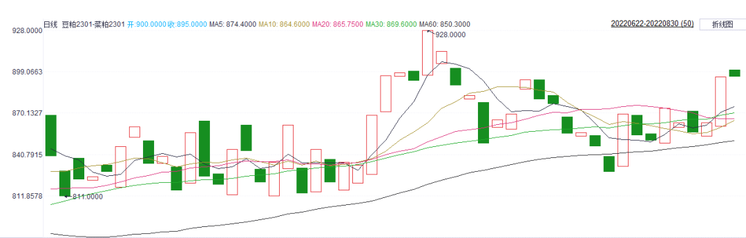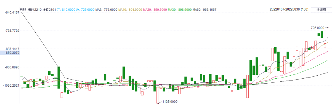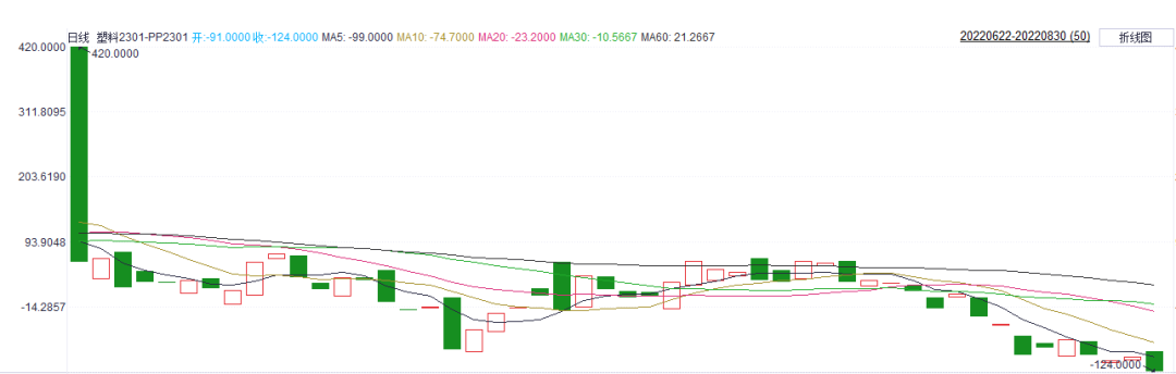 中衍资讯提醒各位投资者朋友: 交易理念是道,是根本,找到一个正期望值的交易系统做好资金管理,克服恐惧与贪婪,遵守规则,保持一致性,见行则行见止则止跟随市场,小亏大赚长期坚持必有所获。此谓大智若愚、大巧若拙。 纪律第一,有了纪律,才能保证风险控制。 运用规则来约束自己,克服恐惧和贪婪。 一定要轻仓,并杜绝在亏损头寸上加仓。 截断亏损,让利润奔跑。 简单+重复+坚持。 2022年8月31日 星期三 01 铁矿主力合约:破位下行 策略建议:铁矿向下突破整理三角形,市场可能已经选择了方向,建议空头思路操作。 02 黄金主力合约:震荡下行 策略建议:黄金在390附近做窄幅波动,大方向仍处于弱势,短期内预计延续下行,建议空头思路操作。 03 橡胶主力合约:弱势下行 策略建议:橡胶仍未见止跌迹象,仍有下行动力,建议空头思路操作。 04 玻璃主力合约:震荡偏空 策略建议:玻璃未出现止跌迹象,仍建议反弹做空思路操作。 头条套利篇 跨品种套利:多豆油空豆粕01 策略建议:多豆油空豆粕01,该策略为跨品种套利策略,可适当加以关注。 跨品种套利:多棕榈空菜粕01 跨品种套利:空L多PP 01 截至08月10 日,我国聚丙烯总库存量75.66万吨,较上期跌2.09万吨,环比跌 2.69%,较上周小幅下降。其中生产企业库存-2.62%,样本贸易商库存-4.59%,样本港口库存+1.50%。PP装置计划近期停车检修增多。 策略建议:空L多PP 01,该策略为新推出的跨品种套利策略,推出后走势符合当初判断,可适当加以关注。 跨期套利:多10空01橡胶 从橡胶近、远月差价走势分析,近一个月近、远月合约间差价震荡走强,近月合约价格走势相对远期01合约价格坚挺。预计远期合约受市场不确定影响较大,相较近月合约而言未来或面临较大压力。 策略建议:多10空01橡胶,该策略为新推出的跨期套利策略,推出后走势符合当初判断,可适当加以关注。若差价跌破-840取消关注。 跨期套利:多09空01豆油 盘面观察,前期近月合约走势较远月合约偏强,短期美豆仍有继续炒作天气升水可能,故可关注做多近月做空远月的正向套利机会。 策略建议:该策略为跨期套利策略,推出后走势符合当初判断,可适当加以关注,若差价下破550(最新向上调整后)暂可取消关注。 跨品种套利:多豆粕空菜粕01 策略建议:该策略为跨品种套利策略,推出后走势符合当初判断,可适当加以关注。如果差价下破800取消关注。