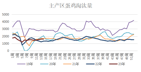 淘汰鸡出栏量近期整体变化不大,前期淘汰鸡价格回调过程中出栏量有所增加,但当前淘汰鸡出栏量放缓和淘汰鸡价格反弹同步出现,说明养殖户淘汰意愿还是不强,根据原来存栏较低的计划,很可能在端午前会有一波淘汰,那么在此之前淘汰量难有较大增加。