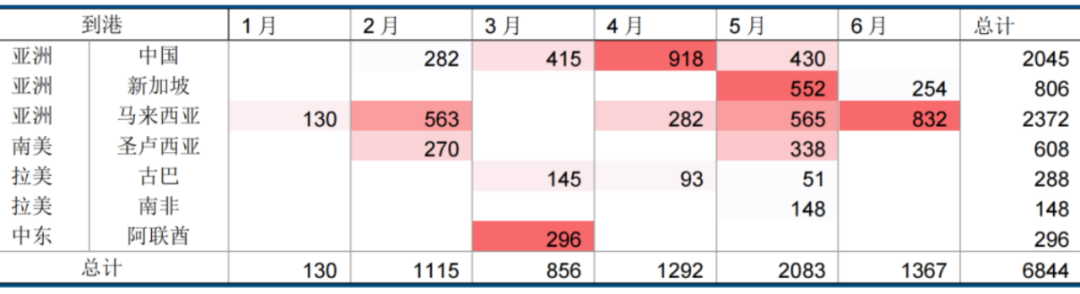 表1. 今年全球进口的委内瑞拉原油到港量(单位:千吨,至5.25)