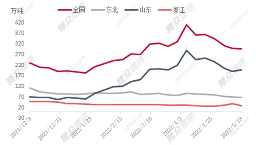 不过据报道,目前美国方面仅许可雪佛龙公司与委内瑞拉方面谈判,允许欧洲公司将委内瑞拉原油运至欧洲,尚未计划将制裁措施全部移除,也就是说委内瑞拉原油出口尚不能正常化,所以制裁放松措施之外的出口仍然不能享受到正常价格,对于我国而言单从价格方面考虑,稀释沥青贴水暂没有上涨的驱动。等稀释沥青量少了之后,贴水预计会被逐渐推升,目前我国港口稀释沥青库存仍有296.1万吨,尚有一定的缓冲作用,如下图所示。