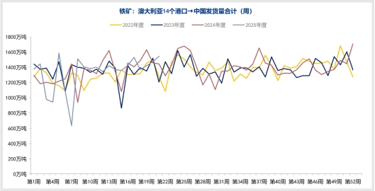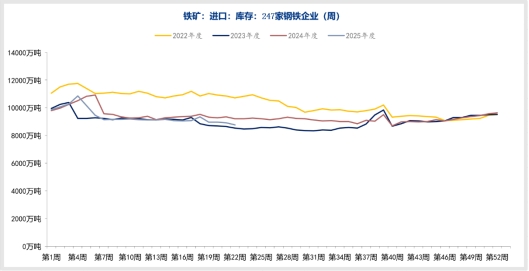 虽然全球铁矿石发运总量环比有所减少,但中国港口的到港量却显著增加,周期内甚至出现了铁矿石集中到港的现象,导致港口库存小幅累积,供应端压力持续显现。