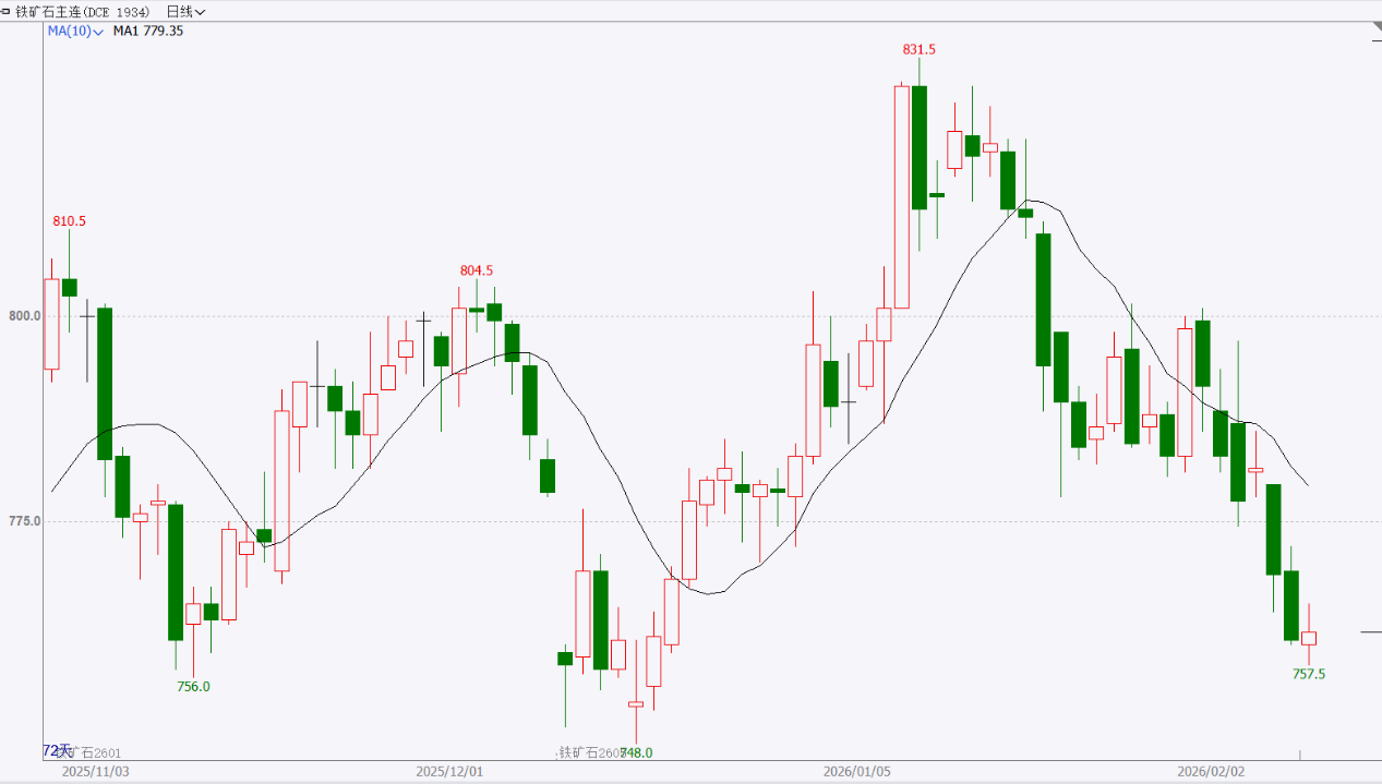 走势分析: 节前补库活动已基本结束。同时,铁水复产节奏整体偏慢。供应保持充裕,港口库存高企压制矿石价格。预计铁矿后市仍有回落空间。