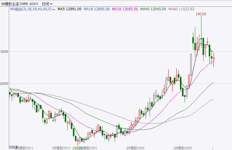 截至前一个交易日收盘,BR橡胶主力合约窄幅震荡,收小阳K线。