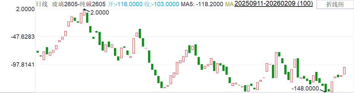 操作策略:多玻璃空纯碱05,该策略为跨品种套利机会,可适当关注。若二者差价下破-148则取消关注。