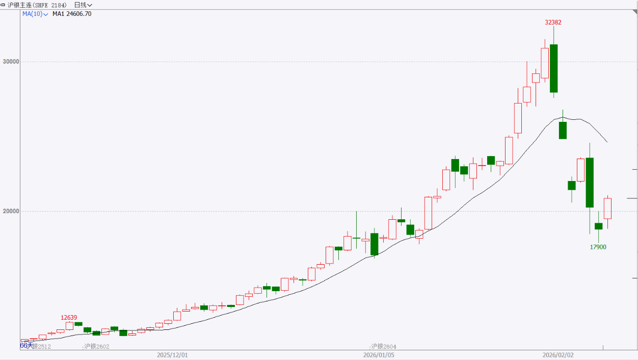 截至前一个交易日收盘,沪银主力合约盘中大幅反弹,整体延续回落。
