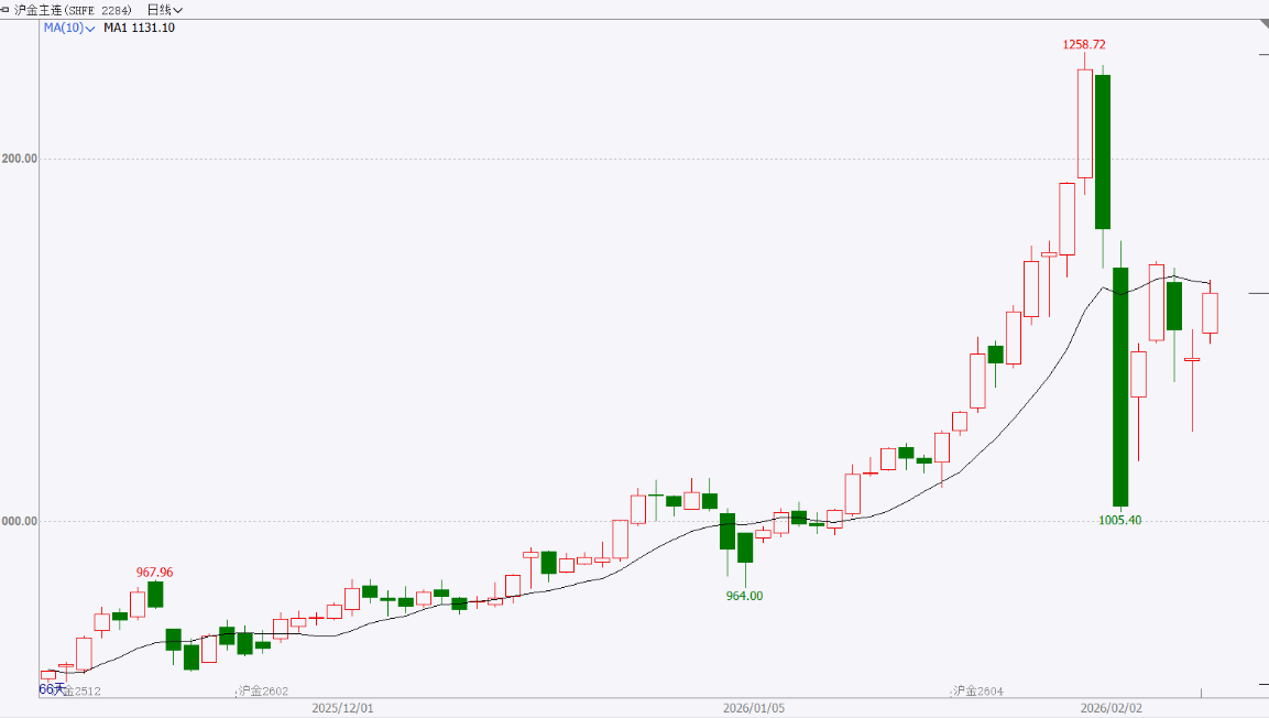 截至前一个交易日收盘,沪金主力合约日内小幅上涨,延续高位震荡。
