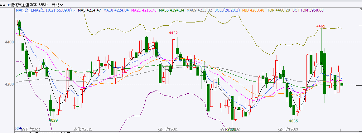 截至前一个交易日收盘,LPG震荡。收阴线。