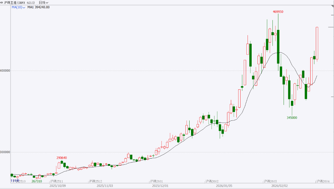 走势分析:受供给端预期扰动与资金情绪回暖的双重驱动,叠加海外市场锡价强势运行,对国内市场形成情绪上的传导。沪锡主力合约大幅增仓,推动价格突破关键整数关口。后市上方或仍有空间。