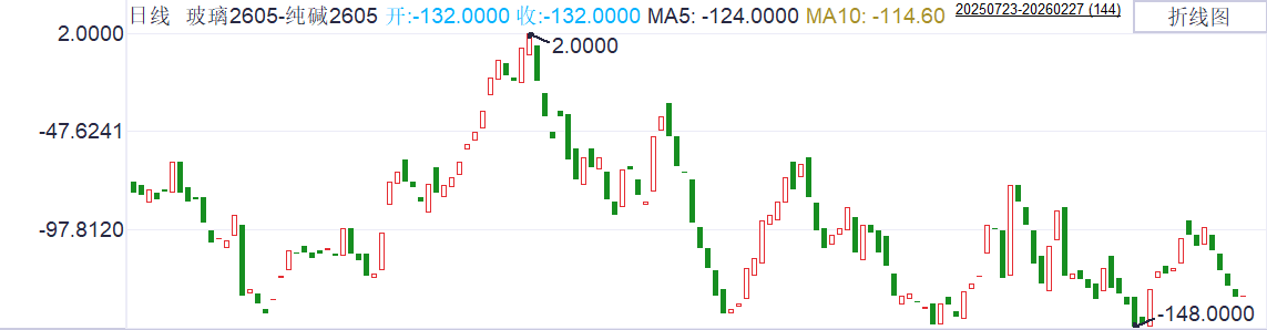 操作策略:多玻璃空纯碱05,该策略为跨品种套利机会,可适当关注。若二者差价下破-148则取消关注。