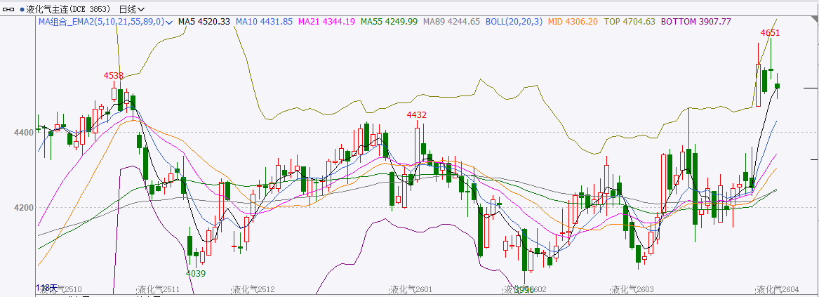 截至前一个交易日收盘,LPG震荡。收阳线。