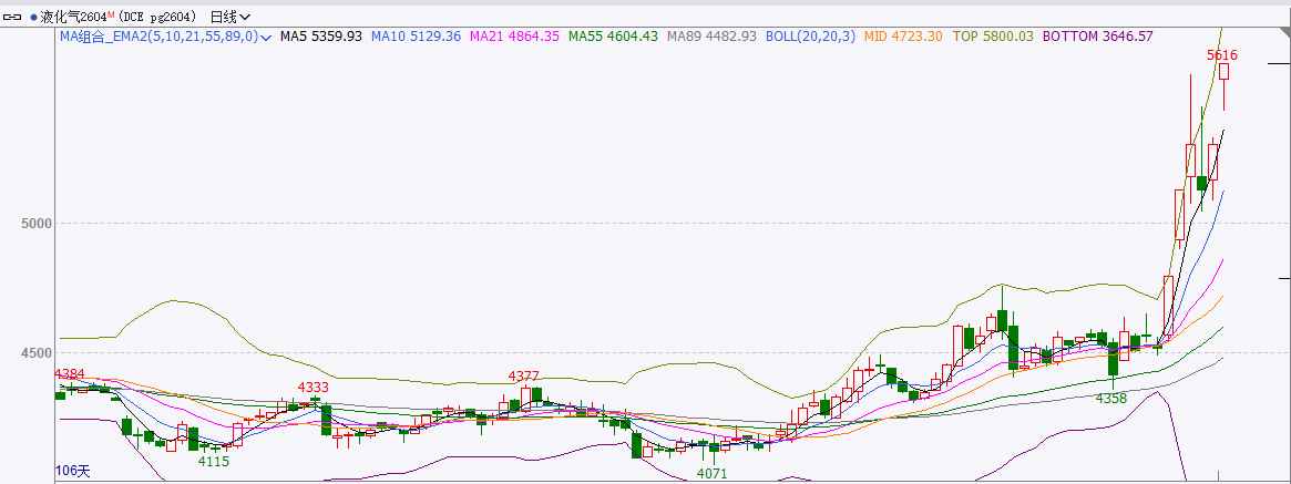 截至前一个交易日收盘,LPG涨停。收阳线。