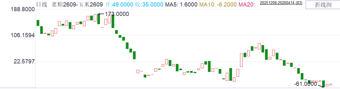 交易逻辑:从季节行规律分析,4月是水产养殖启动期,菜粕需求刚性回升,而玉米处于政策托底震荡期。基本面的为差价回归提供了催化剂。因此,季节性强回归动力时间窗口明确。