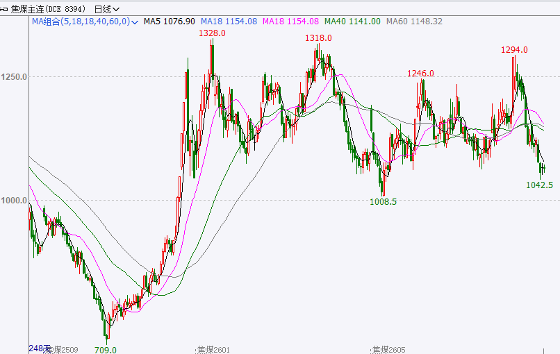 走势分析:今日行情窄幅震荡,短期焦煤供应宽松,需求疲软;后续有望震荡偏弱运行,下方支撑位参考1010附近,上方压力位参考1100附近。