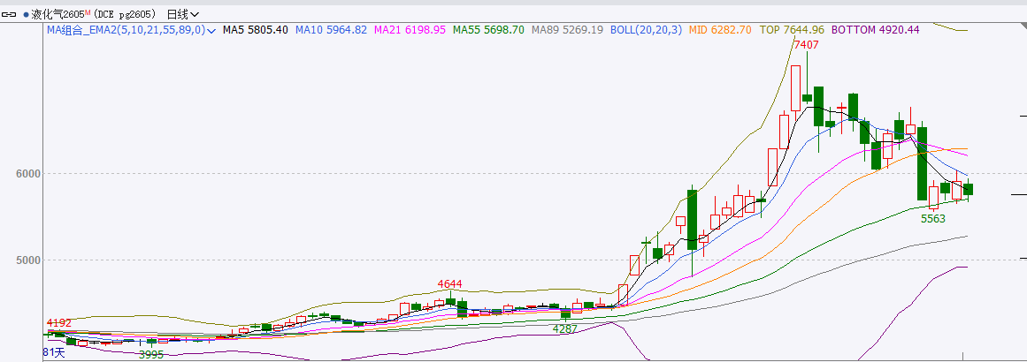 截至前一个交易日收盘,LPG下跌。收阴线。