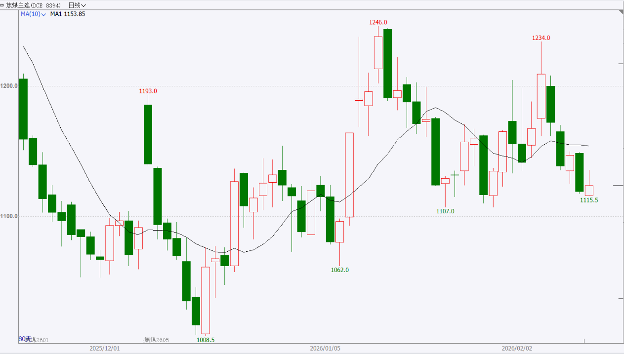 走势分析: 供应端虽因国内煤矿春节停产而收缩,但前期高位进口煤及口岸库存形成了持续的隐性供应压力,抵消了国内产量缩减的利好。焦煤短期内或偏弱运行。