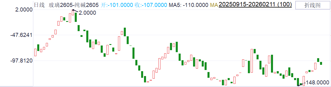 操作策略:多玻璃空纯碱05,该策略为跨品种套利机会,可适当关注。若二者差价下破-148则取消关注。