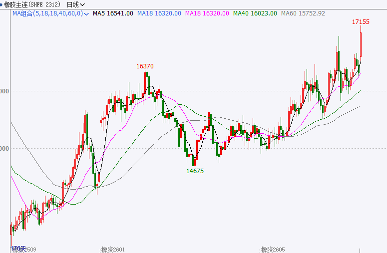 走势分析:今日行情突破前期重要压力位,全球产区进入停割期,后续震荡偏强概率较大,下方支撑位参考16300附近,上方压力位参考17500附近。