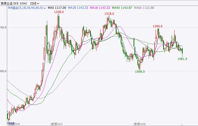 截至前一个交易日收盘,焦煤主力合约小幅下跌,整体延续回落。