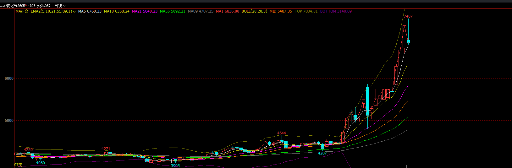 截至前一个交易日收盘,LPG日内回落。收阴线。