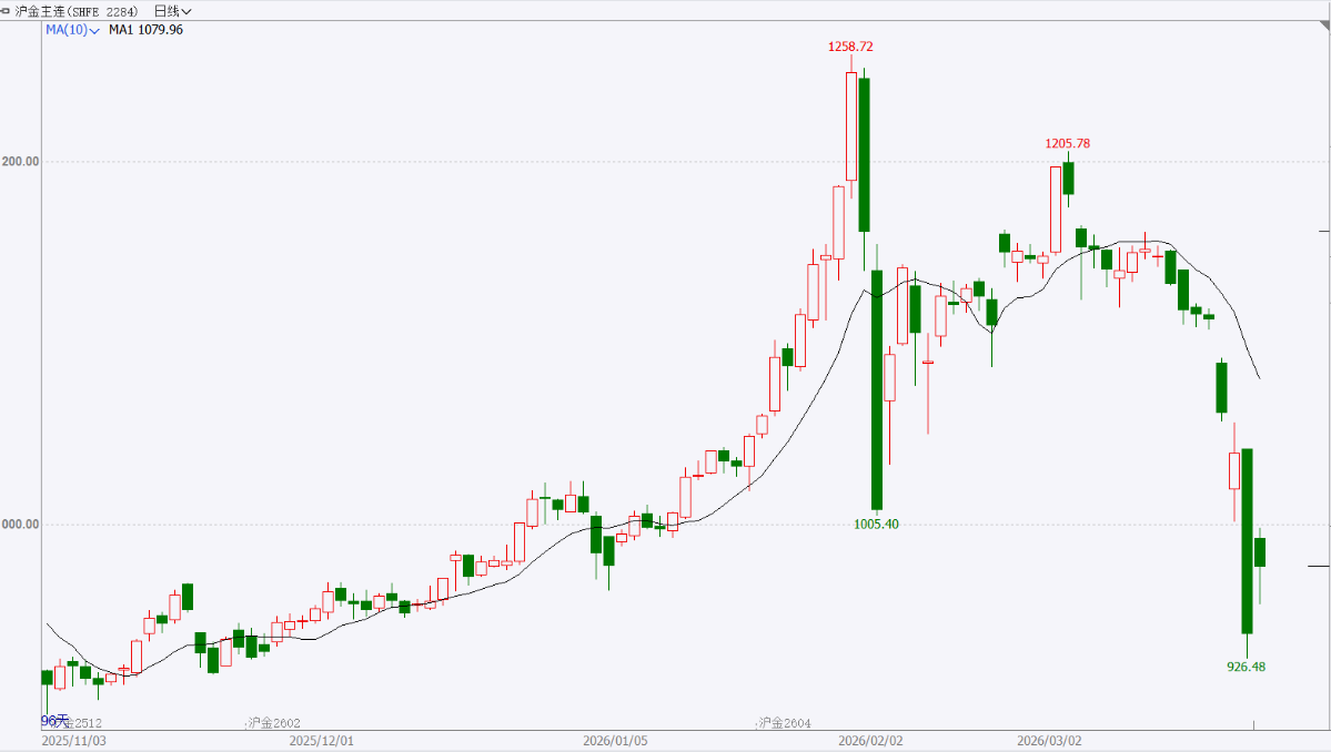 截至前一个交易日收盘,黄金主力合约日内高开低走,小幅反弹。