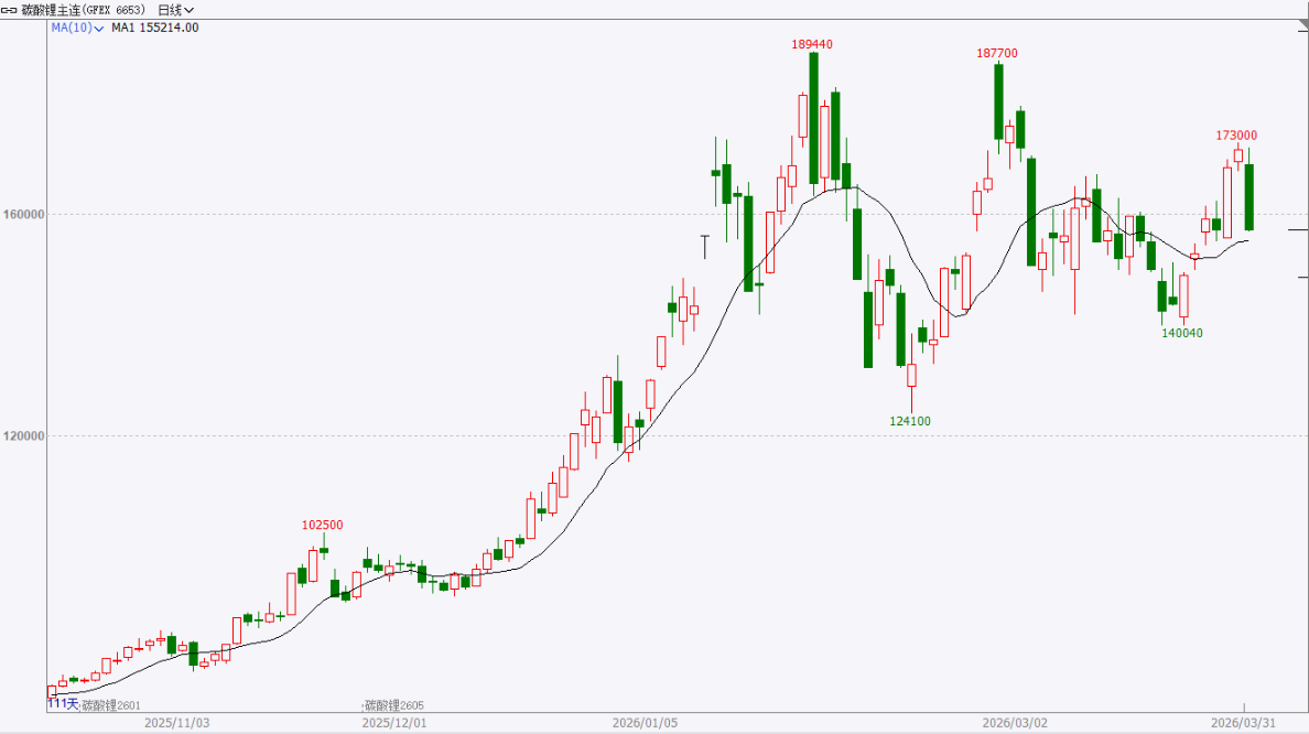 走势分析:前期由供应端扰动引发的情绪溢价已基本消化,市场重新聚焦于长期供需宽松格局。近期盘面呈现宽幅震荡特征,多空博弈较为激烈,但基本面并未出现实质性改善。供给端,海外矿山投产推进顺利,中长期产能释放预期较为明确;需求端,下游采购维持谨慎,补库力度有限,对高价货源接受度较低。展望后市,在供过于求的大背景下,碳酸锂长期价格中枢或仍面临下行压力,短期则延续震荡反复格局。