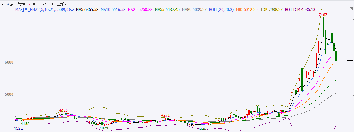 截至前一个交易日收盘,LPG继续下跌。收阴线。