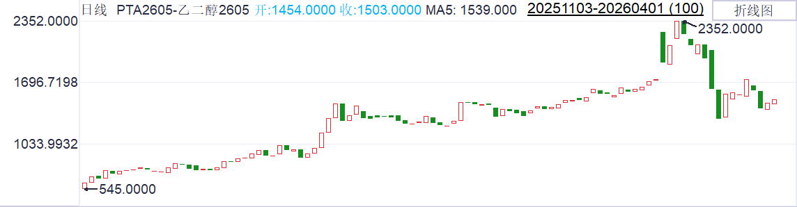 交易逻辑:当前PTA2605与EG2605差价处于较低位。TA2605 & EG2605两者基本面分化,价差具备走扩可能。