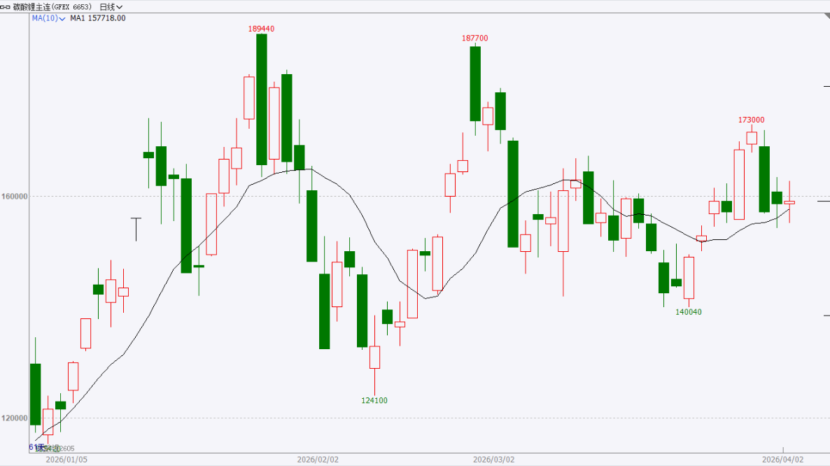 走势分析:前期由供应端扰动引发的情绪溢价已基本消化,市场重新聚焦于长期供需宽松格局。近期盘面呈现宽幅震荡特征,多空博弈较为激烈,但基本面并未出现实质性改善。供给端,海外矿山投产推进顺利,中长期产能释放预期较为明确;需求端,下游采购维持谨慎,补库力度有限,对高价货源接受度较低。展望后市,在供过于求的大背景下,碳酸锂长期价格中枢或仍面临下行压力,短期则延续震荡反复格局。