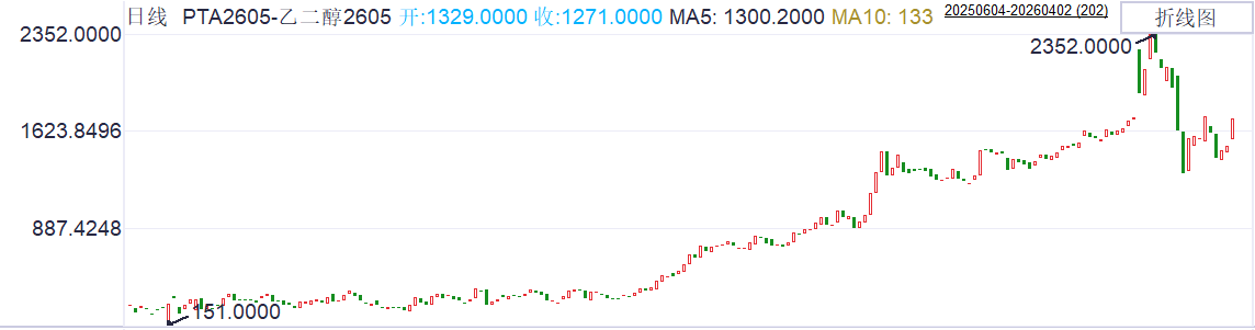 交易逻辑:当前PTA2605与EG2605差价处于较低位。TA2605 & EG2605两者基本面分化,价差具备走扩可能。