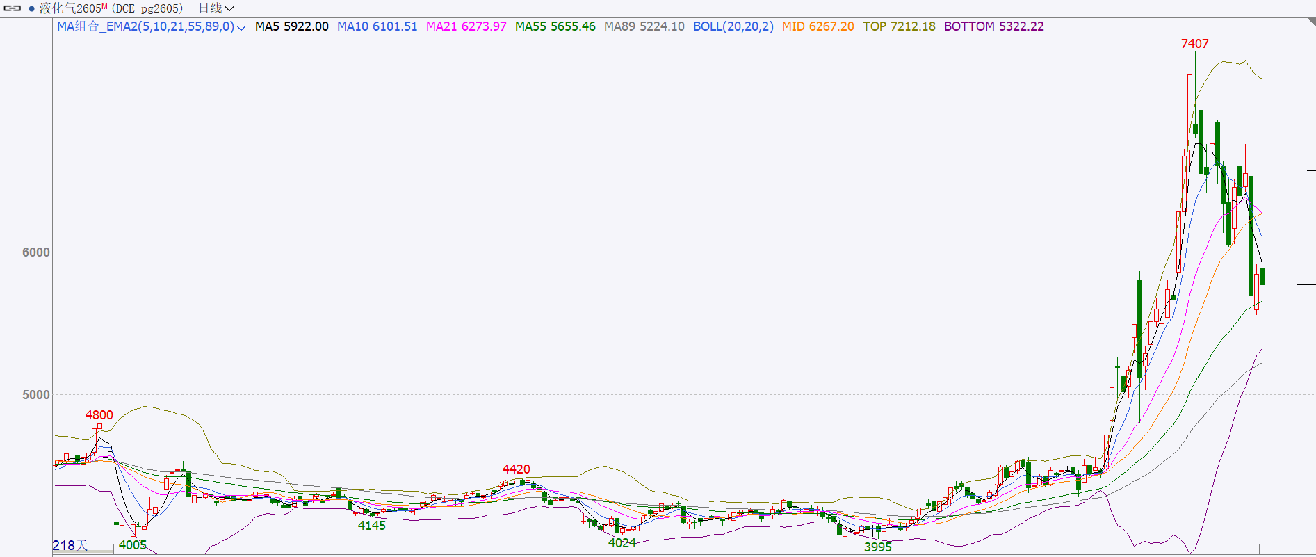 截至前一个交易日收盘,LPG震荡。收阴线。